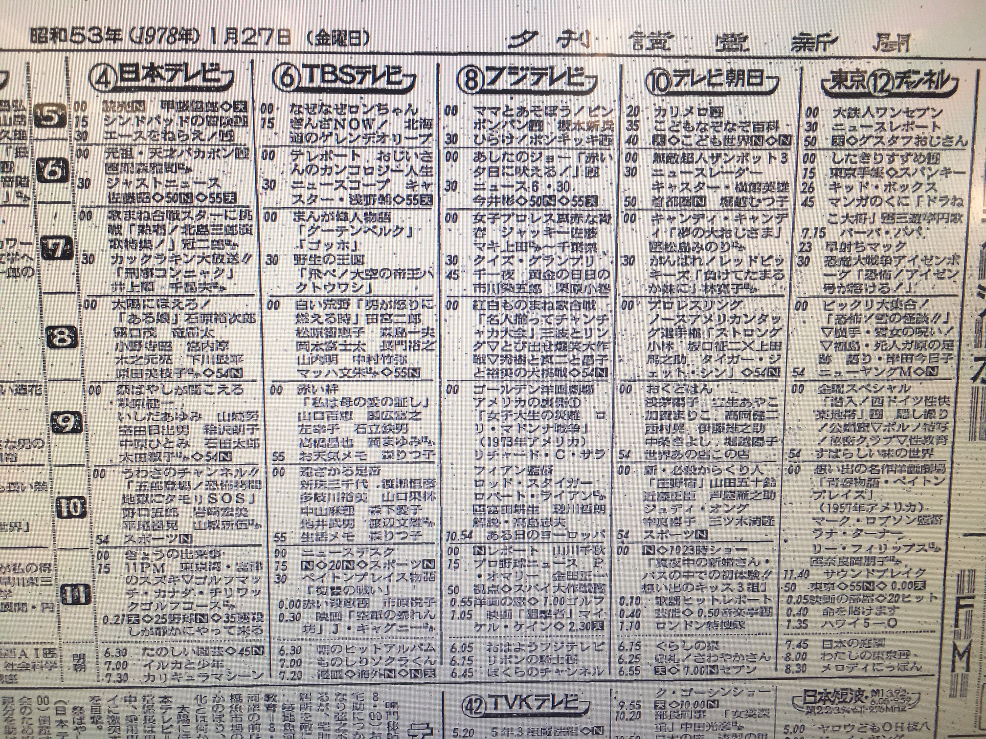 当日のテレビ欄(読売新聞夕刊)