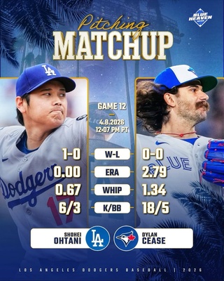 大谷先発・岡本出場予定 MLB2026「ドジャース」対「ブルージェイズ」★1 (1002)