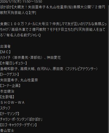 番組ch(フジ): 2026/01/15(木) 10:52:32
